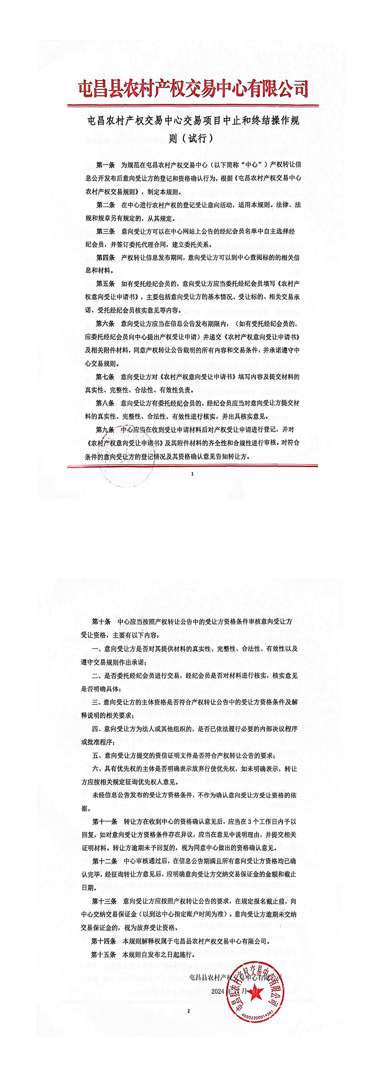 屯昌农村产权交易中心交易项目中止和终结操作规则